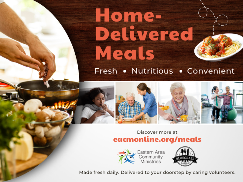 EACM's Home-Delivered Meals program provides delicious, affordable meals, delivered by volunteers to Louisville homes every weekday.